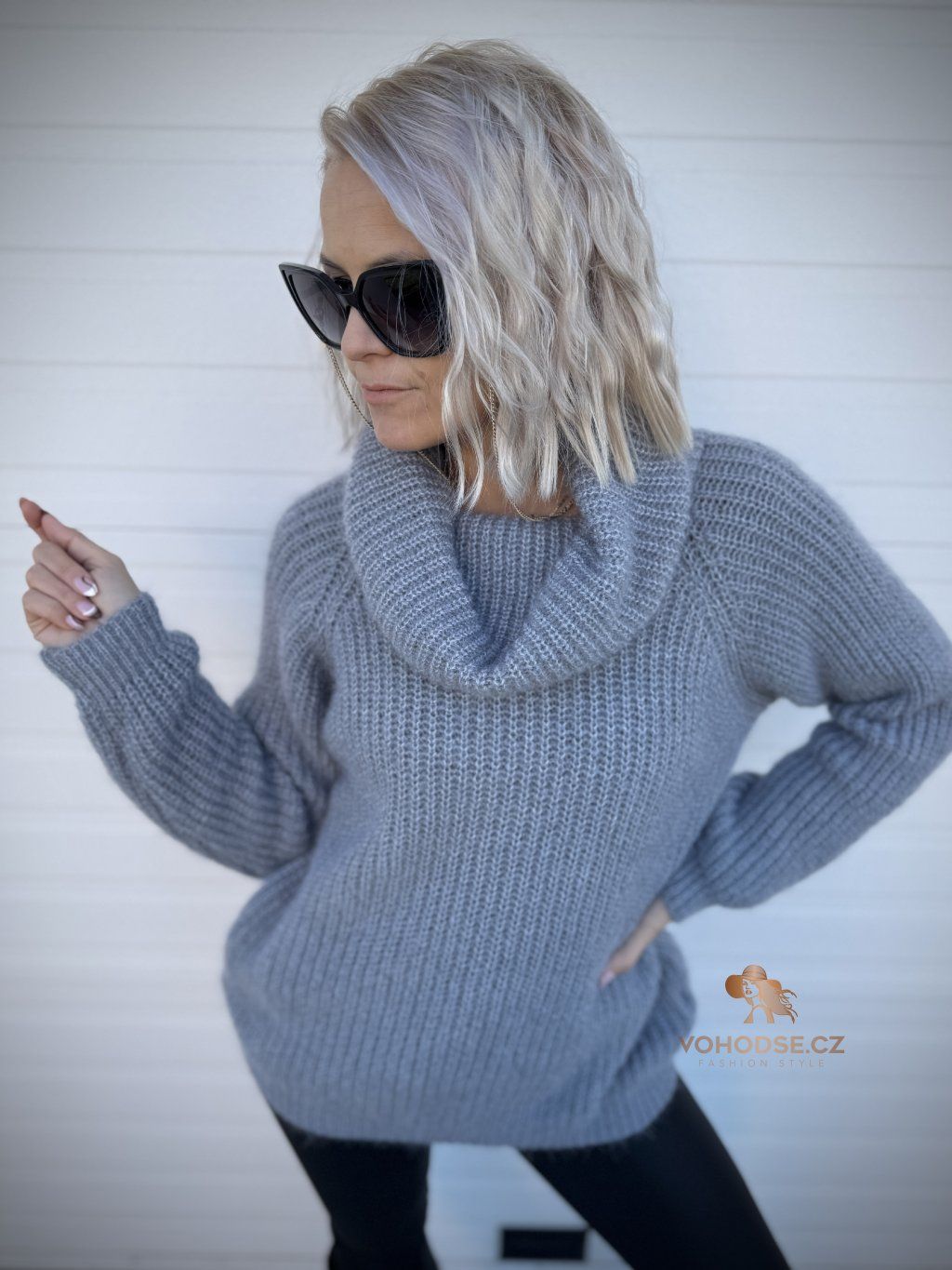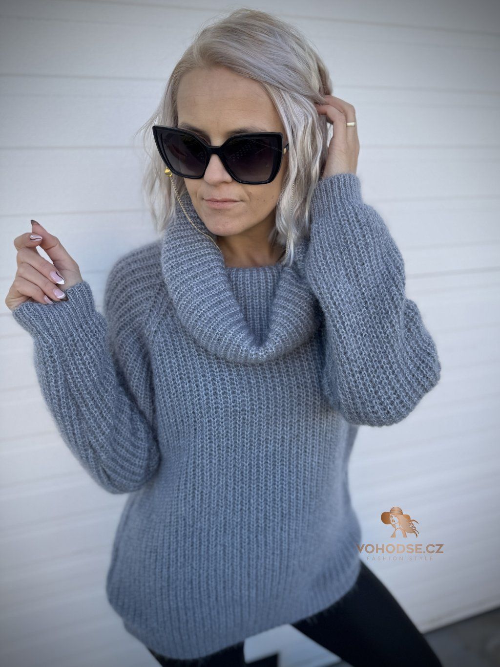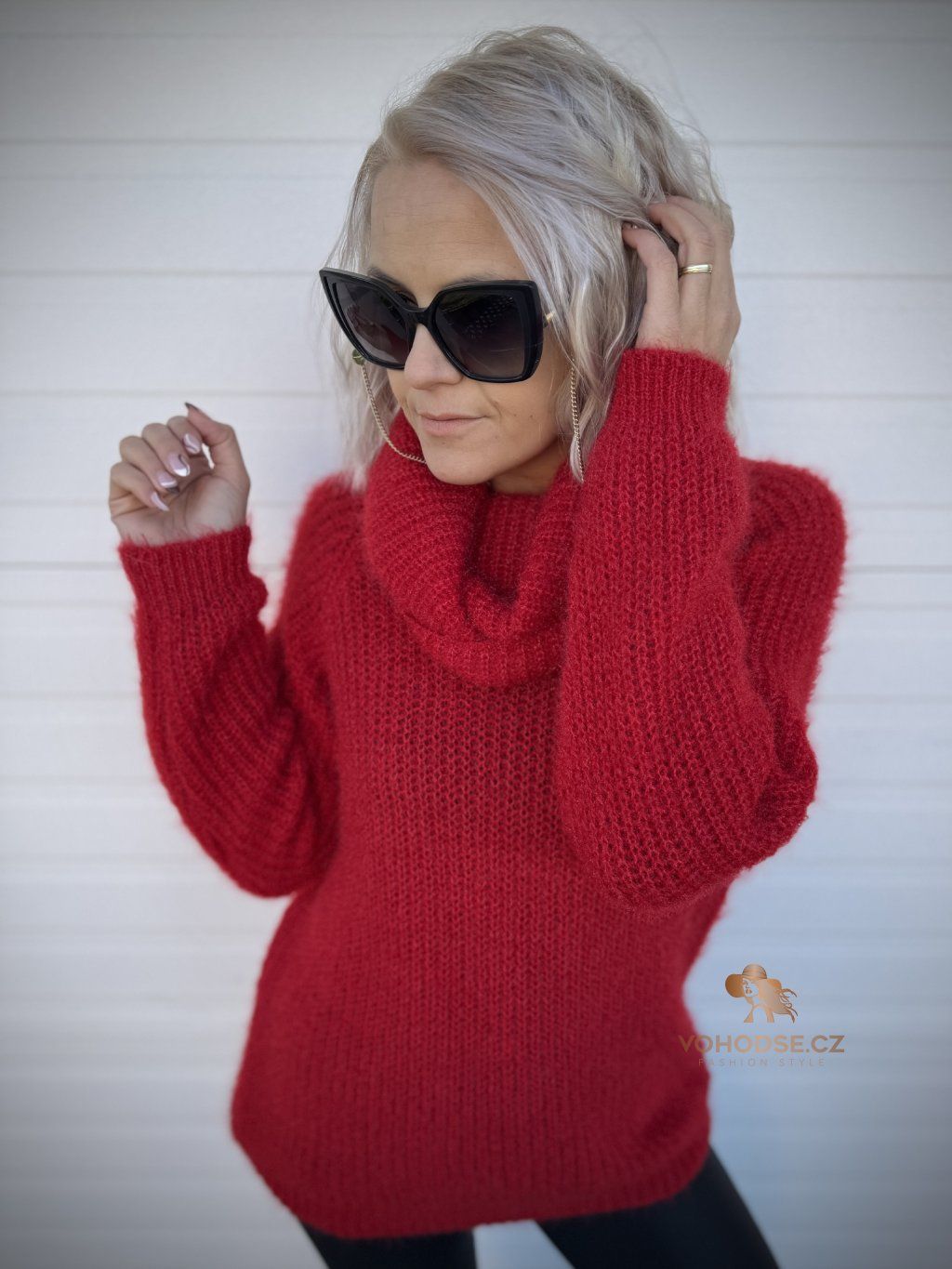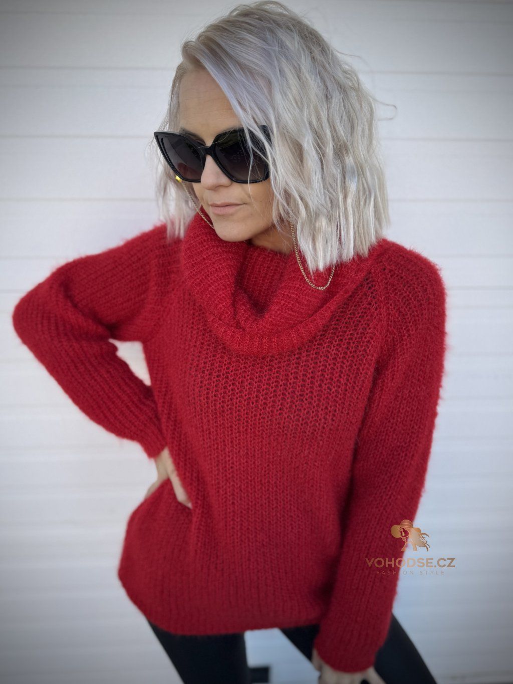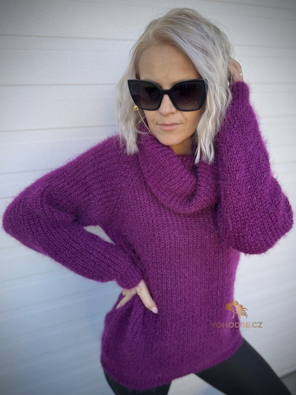 - Huňatý dámský svetr s rolákem u krku