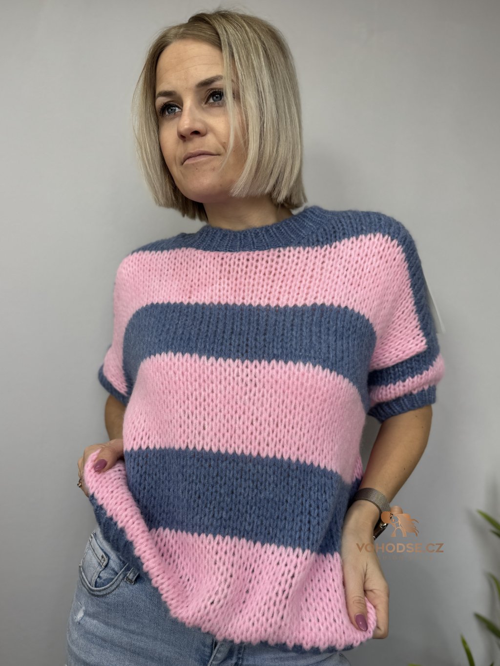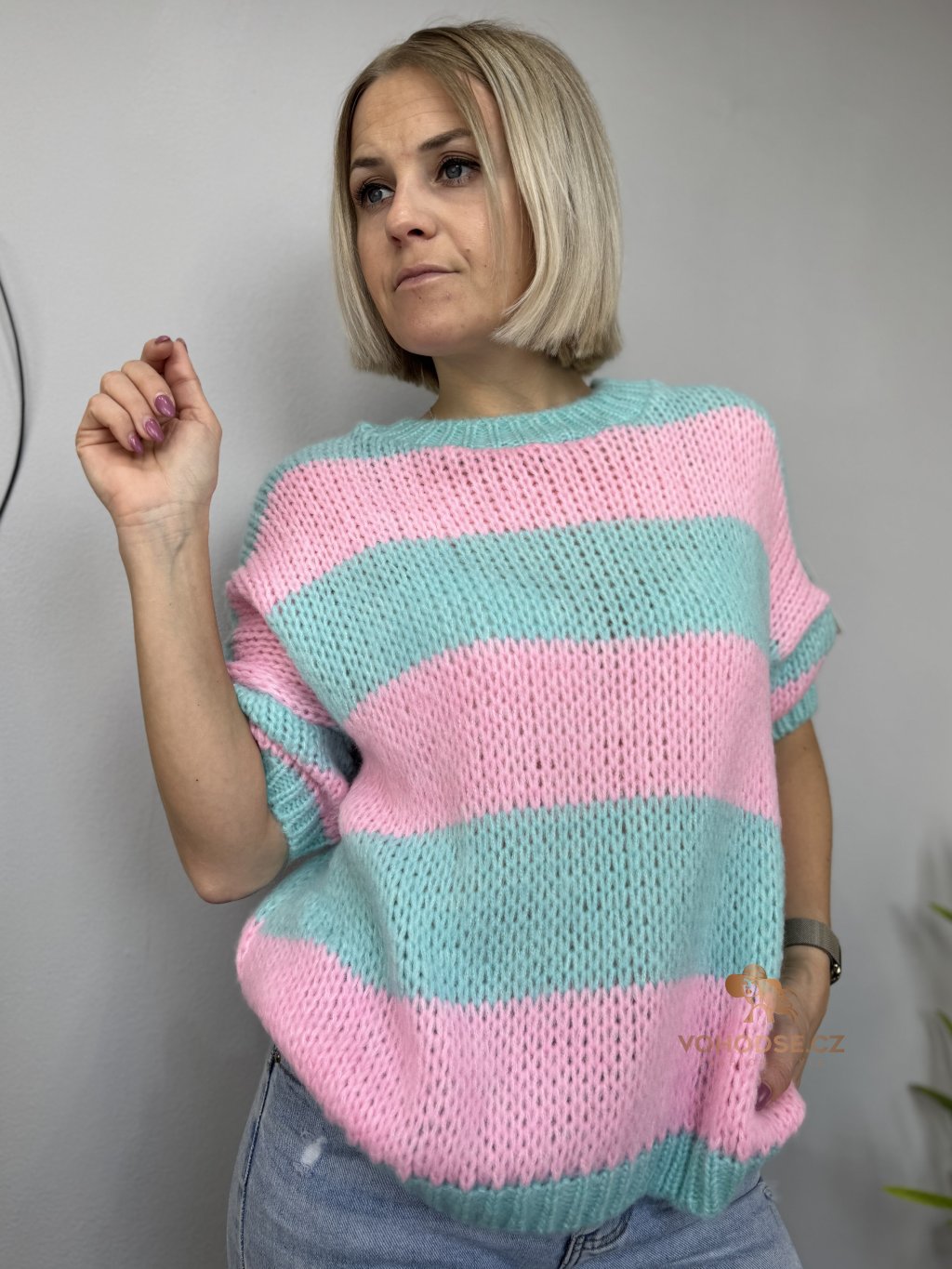 Stylový a nepřehlédnutelný svetr v jemných pastelových pruzích, který rozzáří každý outfit. Volnější střih zajišťuje maximální pohodlí a zároveň působí moderně a ležérně. Krátký rukáv dělá ze svetru ideální kousek pro přechodné období a vrstvení. Materiál je příjemný, měkký a lehký, takže se nosí skvěle po celý den.