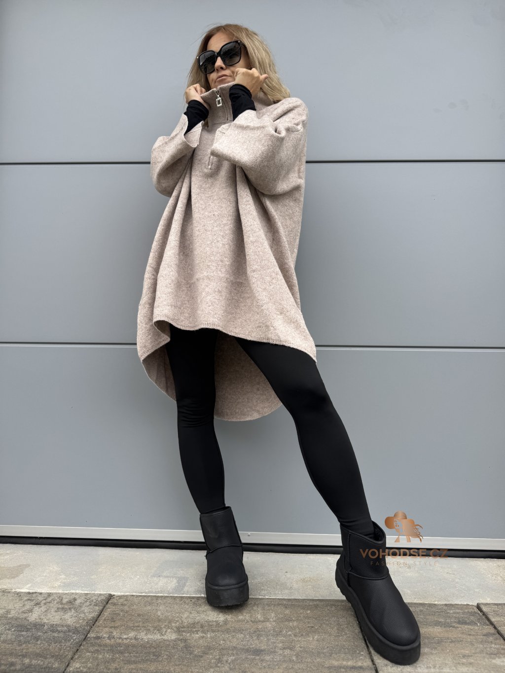 - Lze nosit jako svetrové šaty nebo tunika