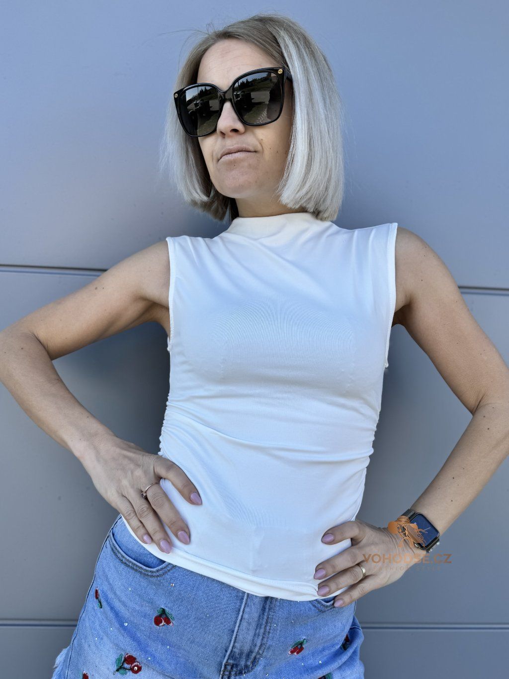 Jednoduchý, ale maximálně stylový. Tento přiléhavý top s vyšším stojáčkem krásně zvýrazní postavu a snadno ho zkombinujete s džínami, sukní i elegantnějšími kalhotami. Díky pružnému a příjemnému materiálu perfektně sedí a je ideální na každodenní nošení i vrstvení pod sako nebo bundu. Nadčasový basic, který unosíte po celý rok.