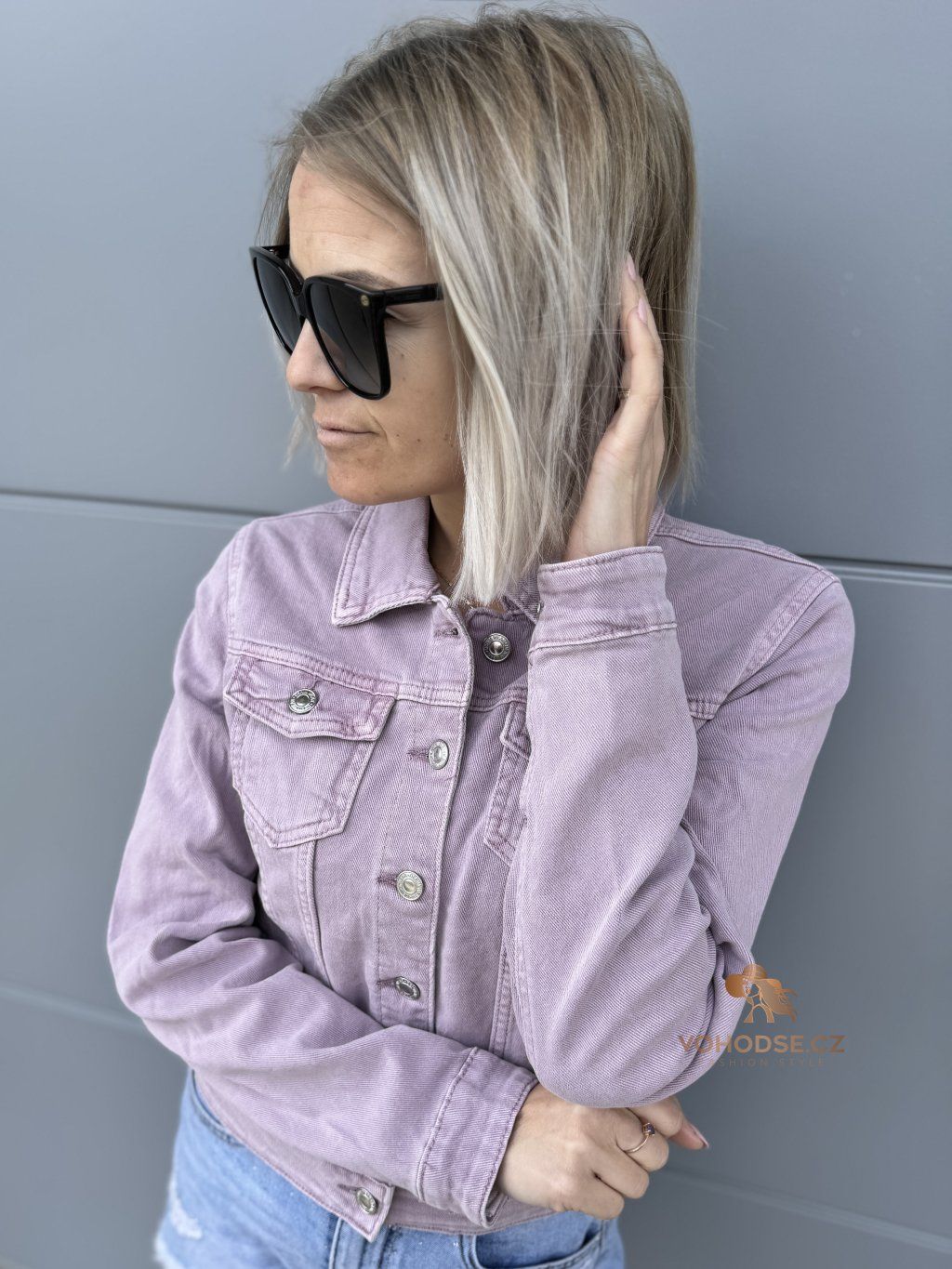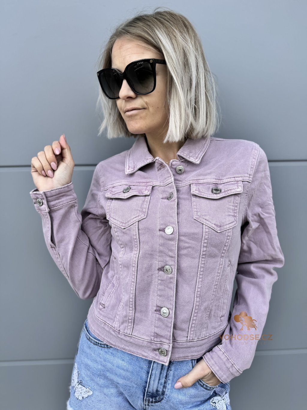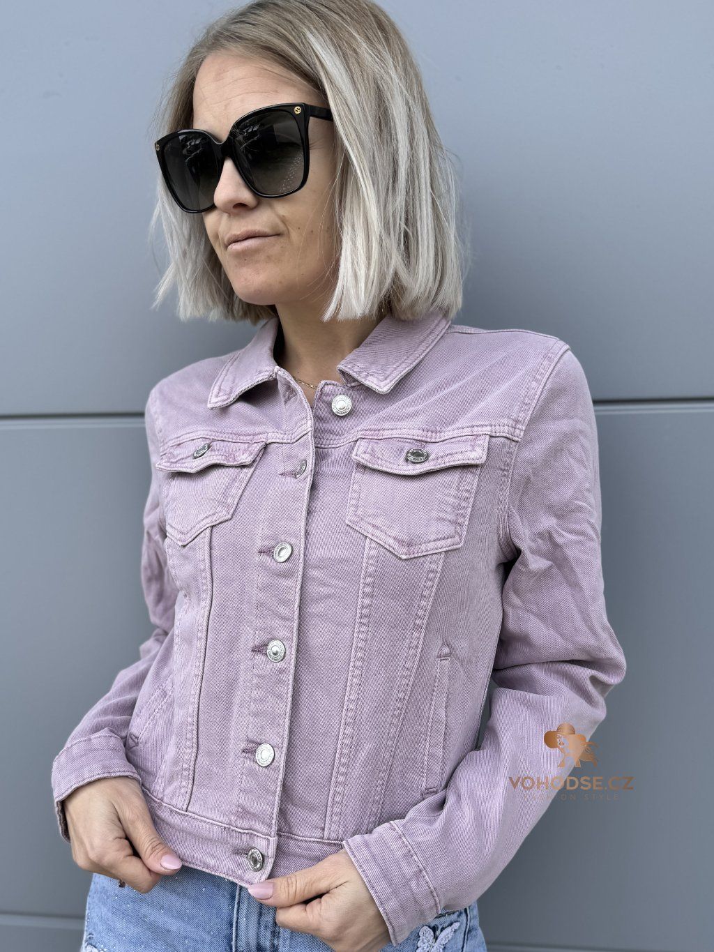 Stylová džínová bunda v krásném lila odstínu dodá vašemu outfitu jemnost a originální nádech. Tento odstín je skvělou alternativou ke klasickým barvám a perfektně rozzáří každý Look. Bunda má klasický střih s límečkem, zapínání na knoflíky a praktické náprsní kapsy. Díky lehce pružnému materiálu skvěle sedí a pohodlně se nosí po celý den.