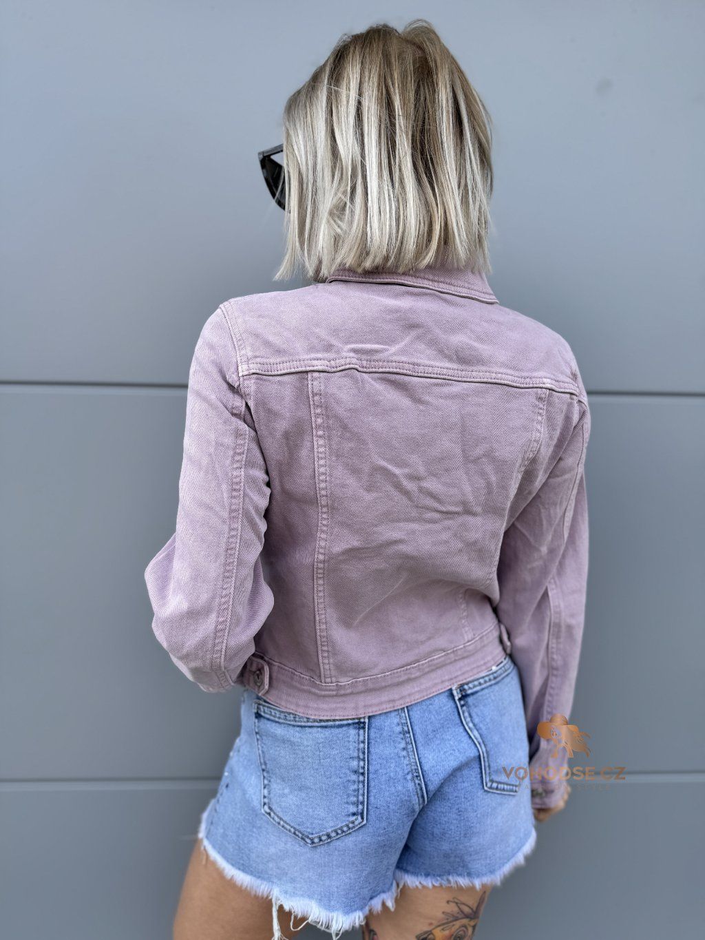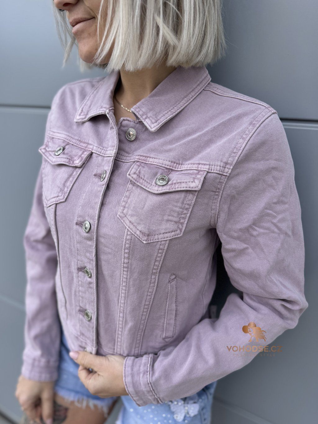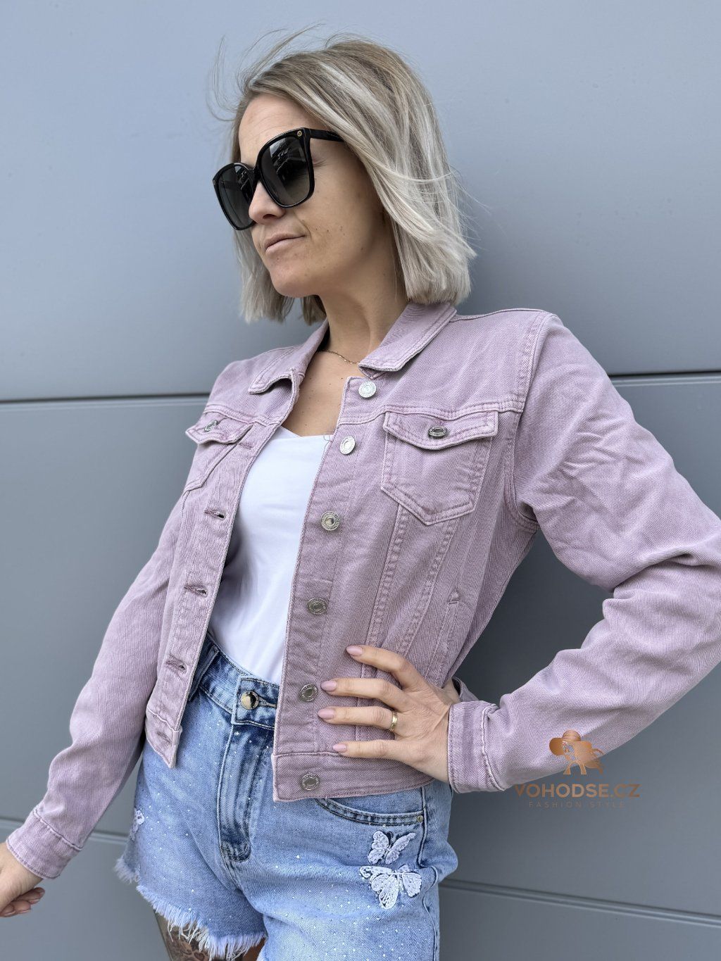 Stylová džínová bunda v krásném lila odstínu dodá vašemu outfitu jemnost a originální nádech. Tento odstín je skvělou alternativou ke klasickým barvám a perfektně rozzáří každý Look. Bunda má klasický střih s límečkem, zapínání na knoflíky a praktické náprsní kapsy. Díky lehce pružnému materiálu skvěle sedí a pohodlně se nosí po celý den.