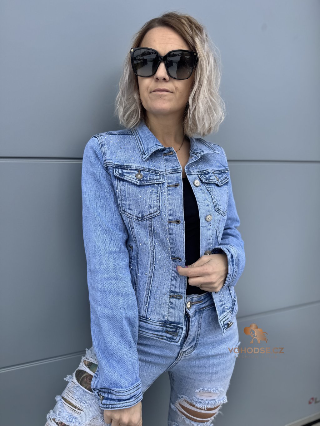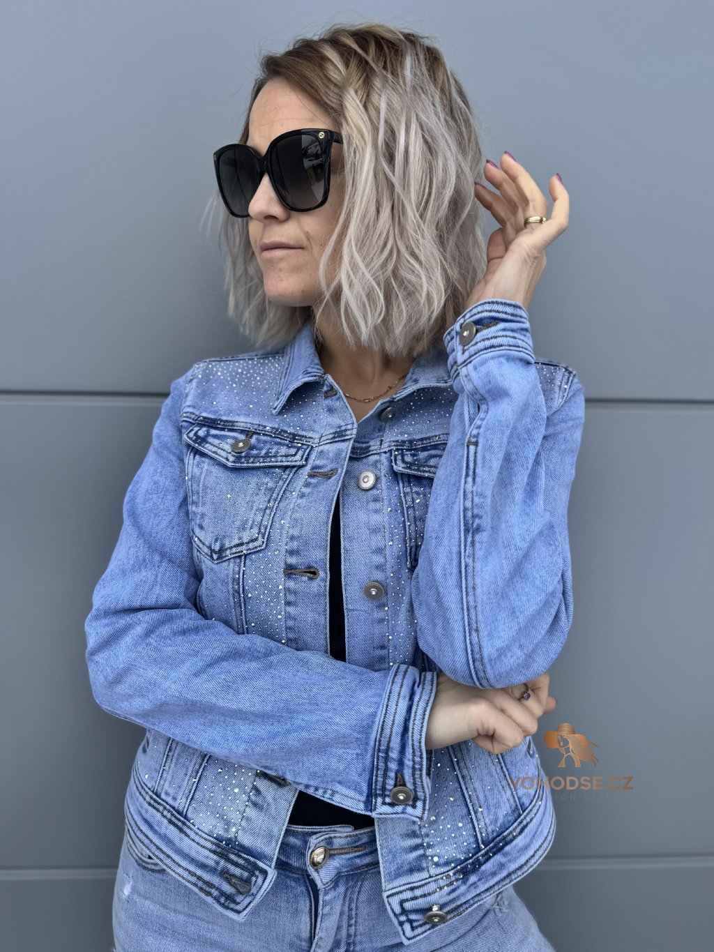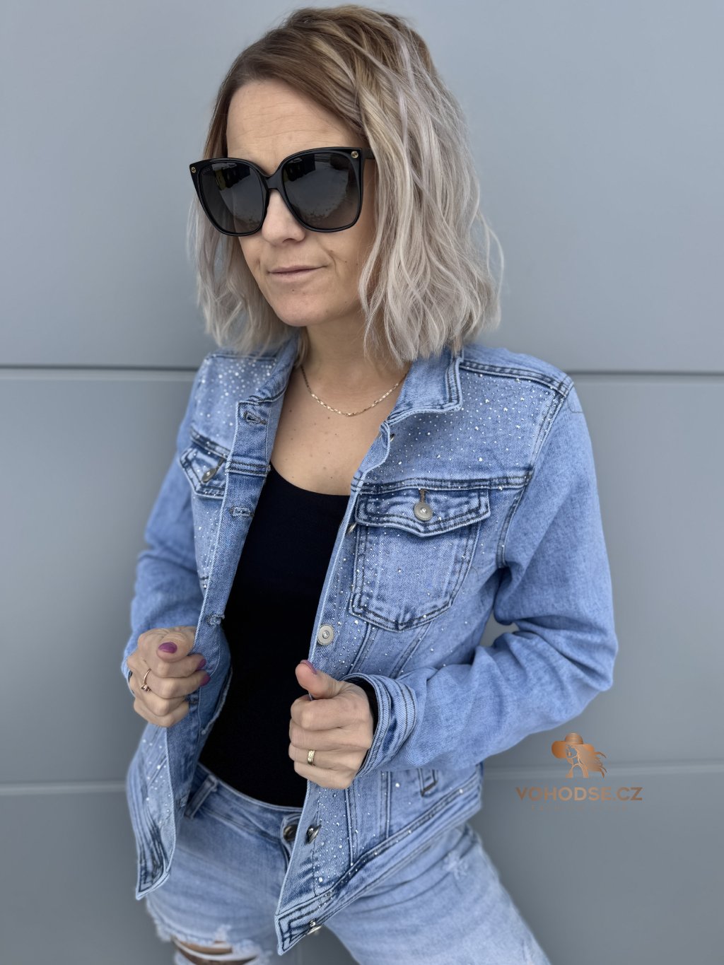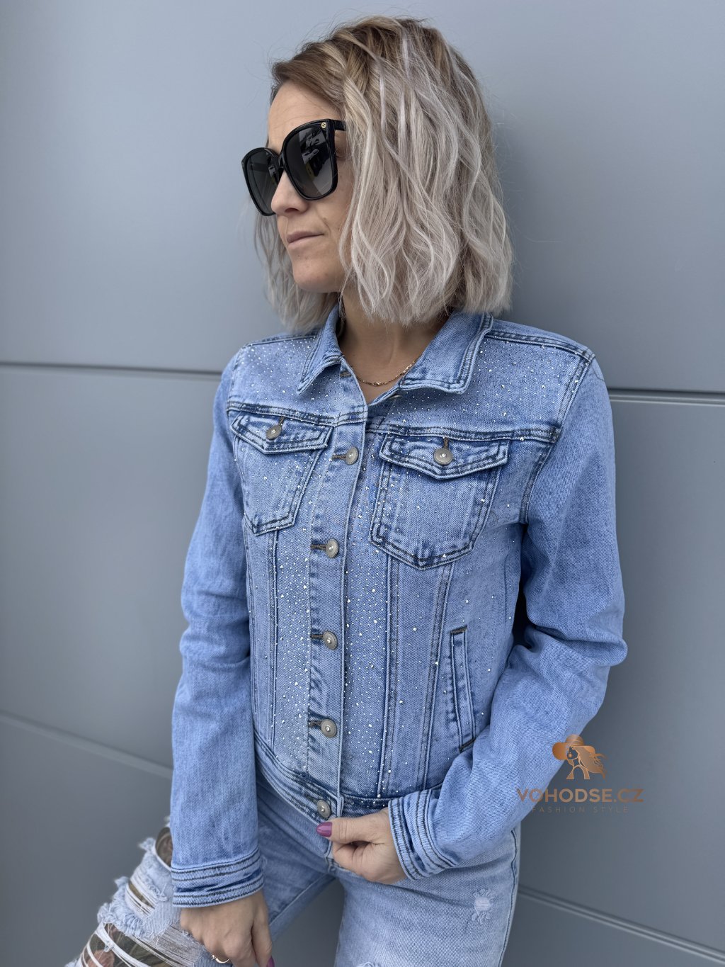 - Klasická džínová bunda ozvláštněná jemnými kamínky, který dodají oufitu šmrnc
