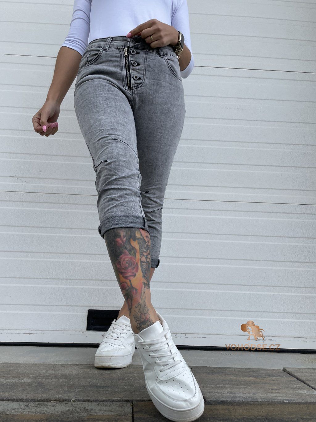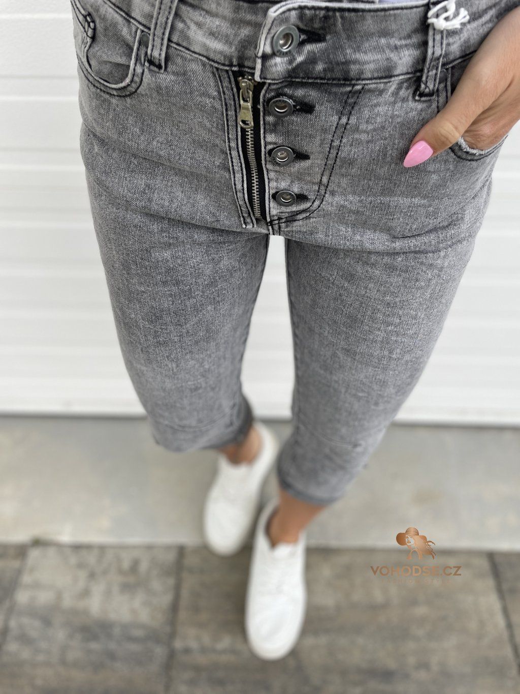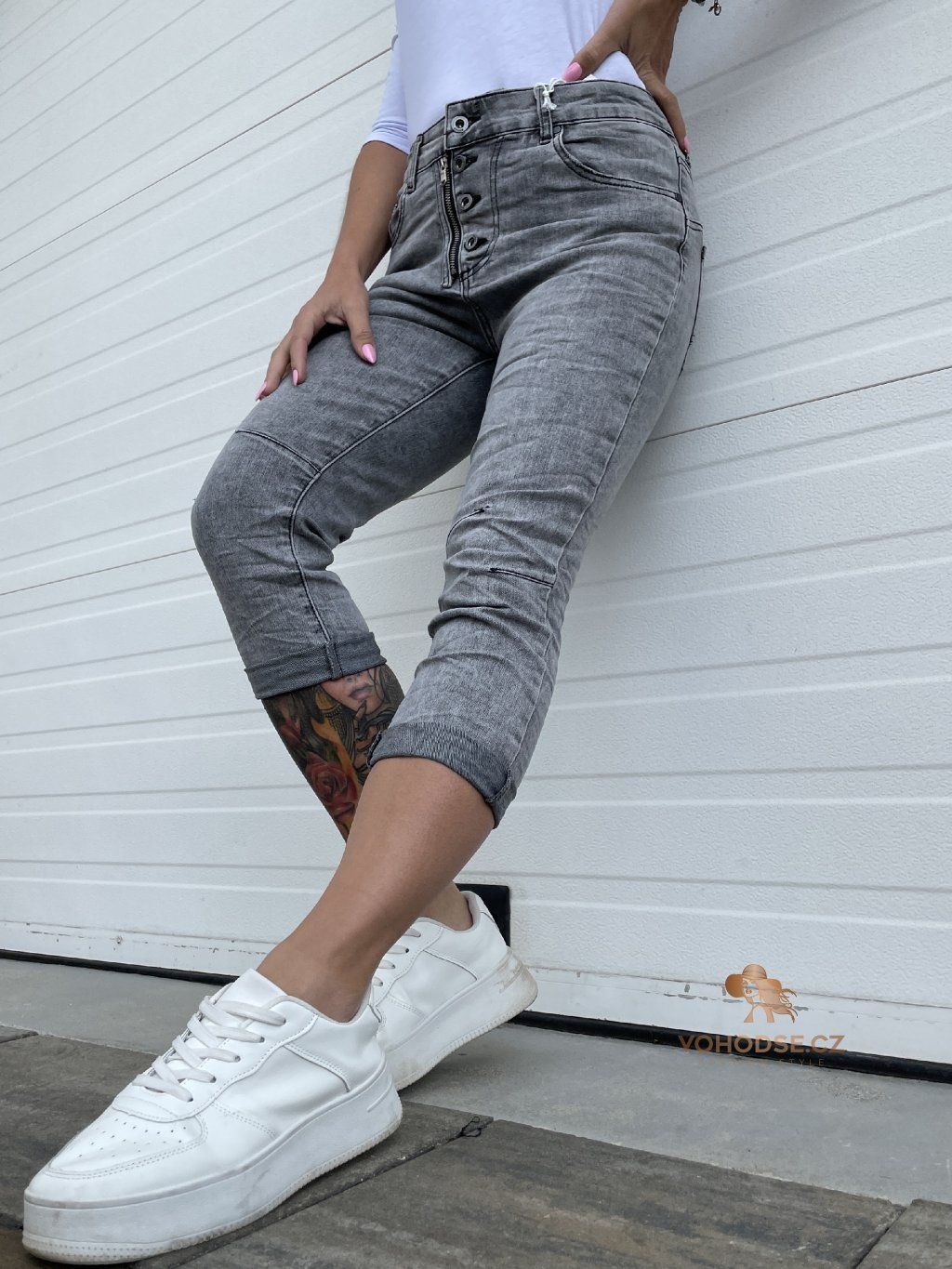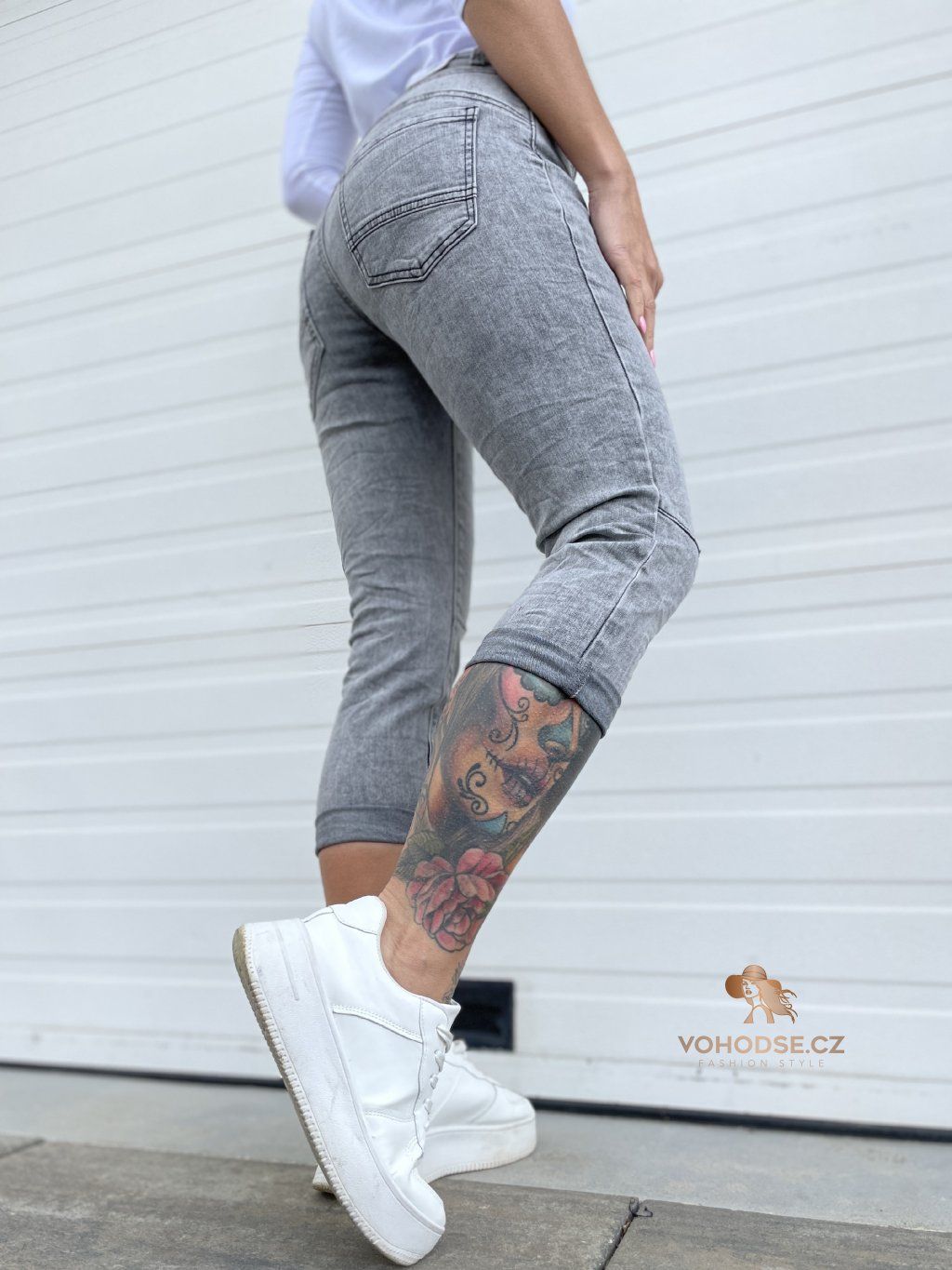 - Moderní dámské džínové 3/4 kalhoty v trendy šedé barvě
