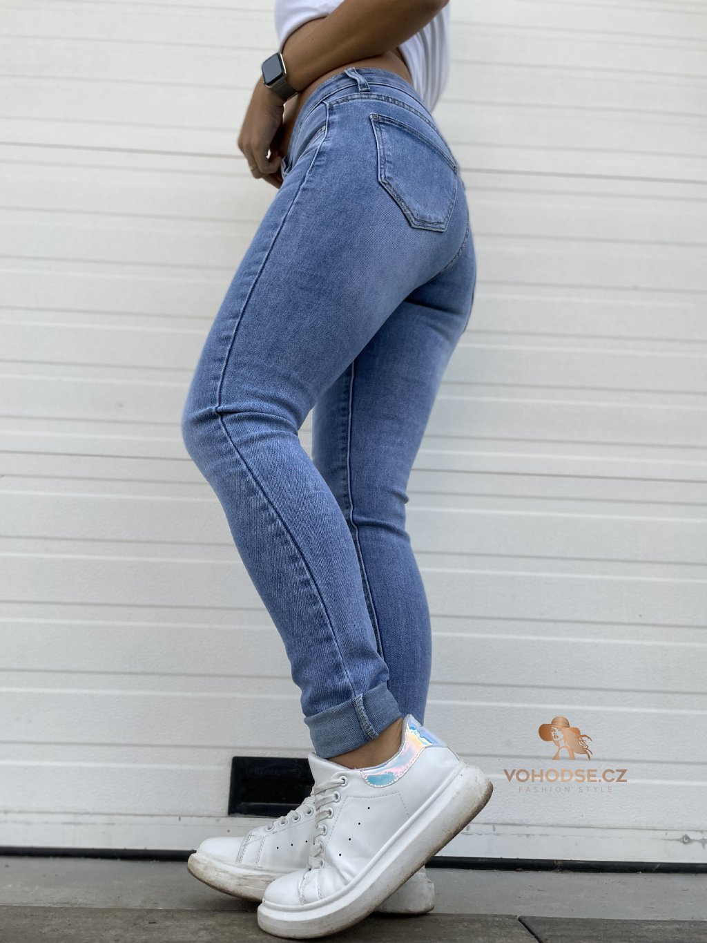 - Moderní dámské rifle ve světlejší modré barvě