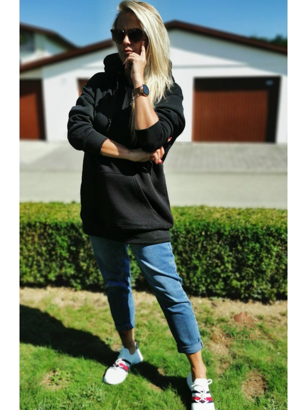 - Trendy černá mikina s klokaní kapsou a kapucí