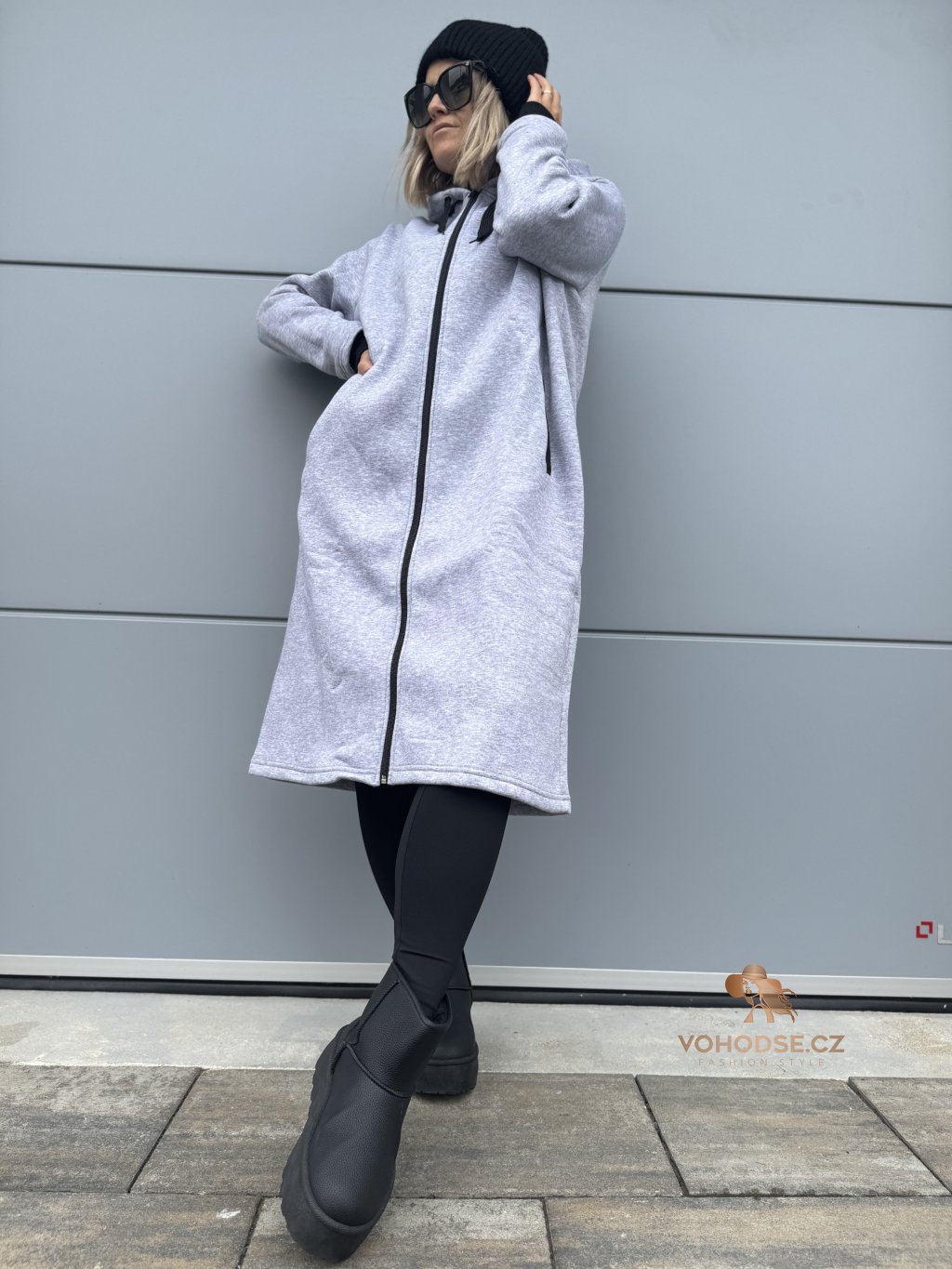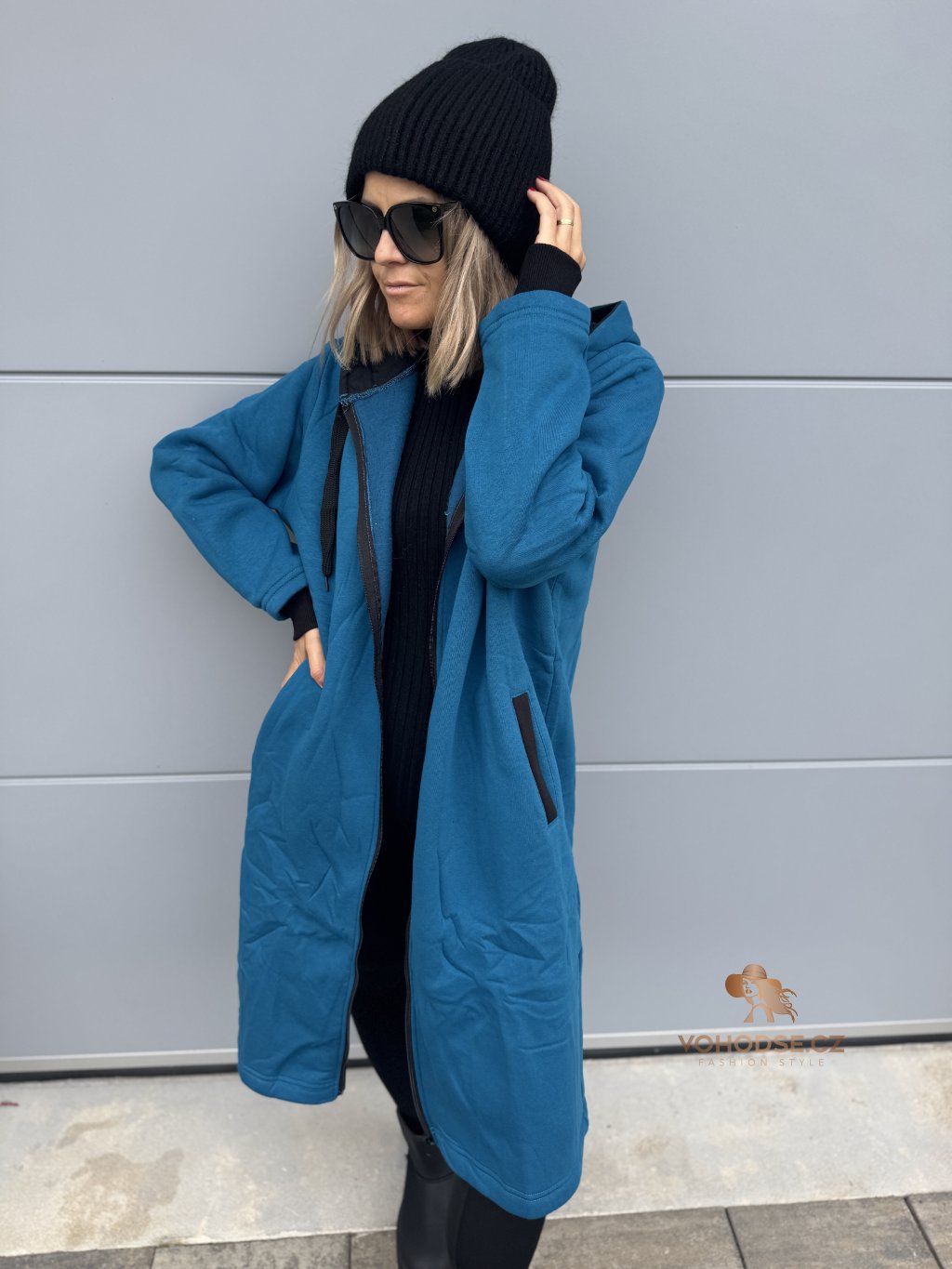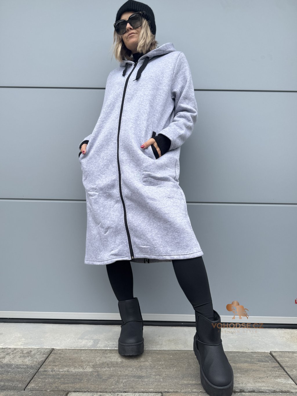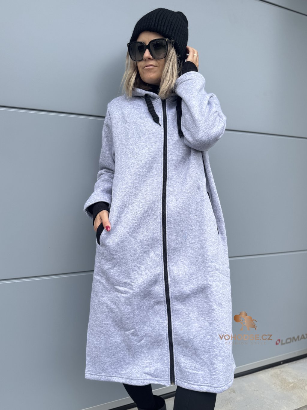 • Stylový - dlouhý dámský mikinový kabátek s kapucí OVERSIZE