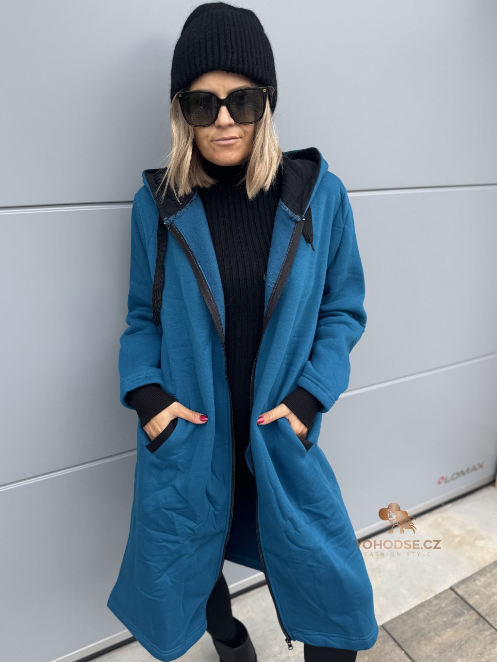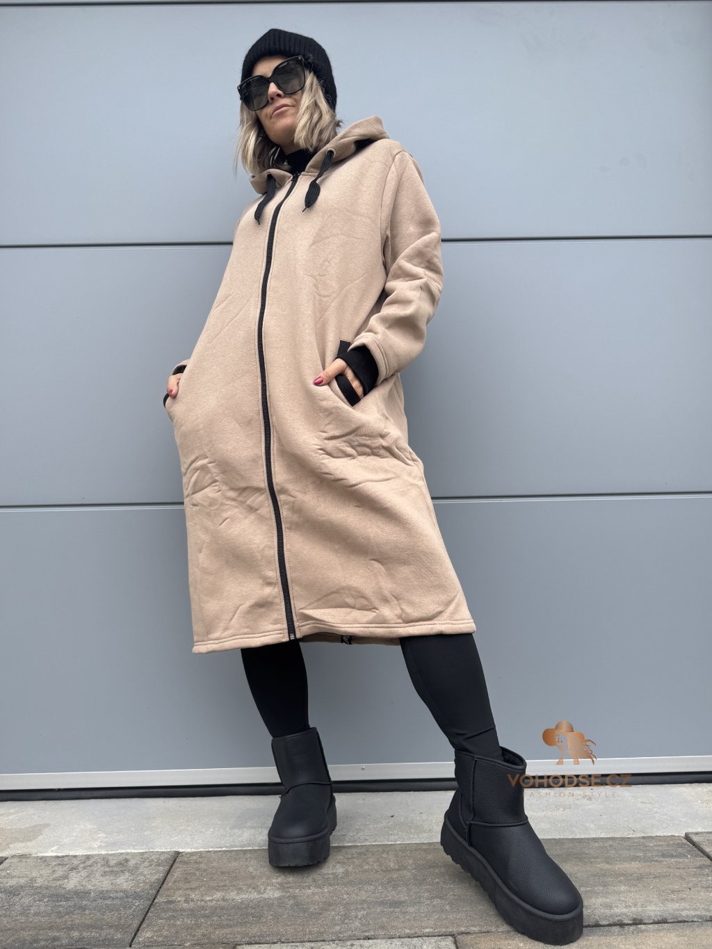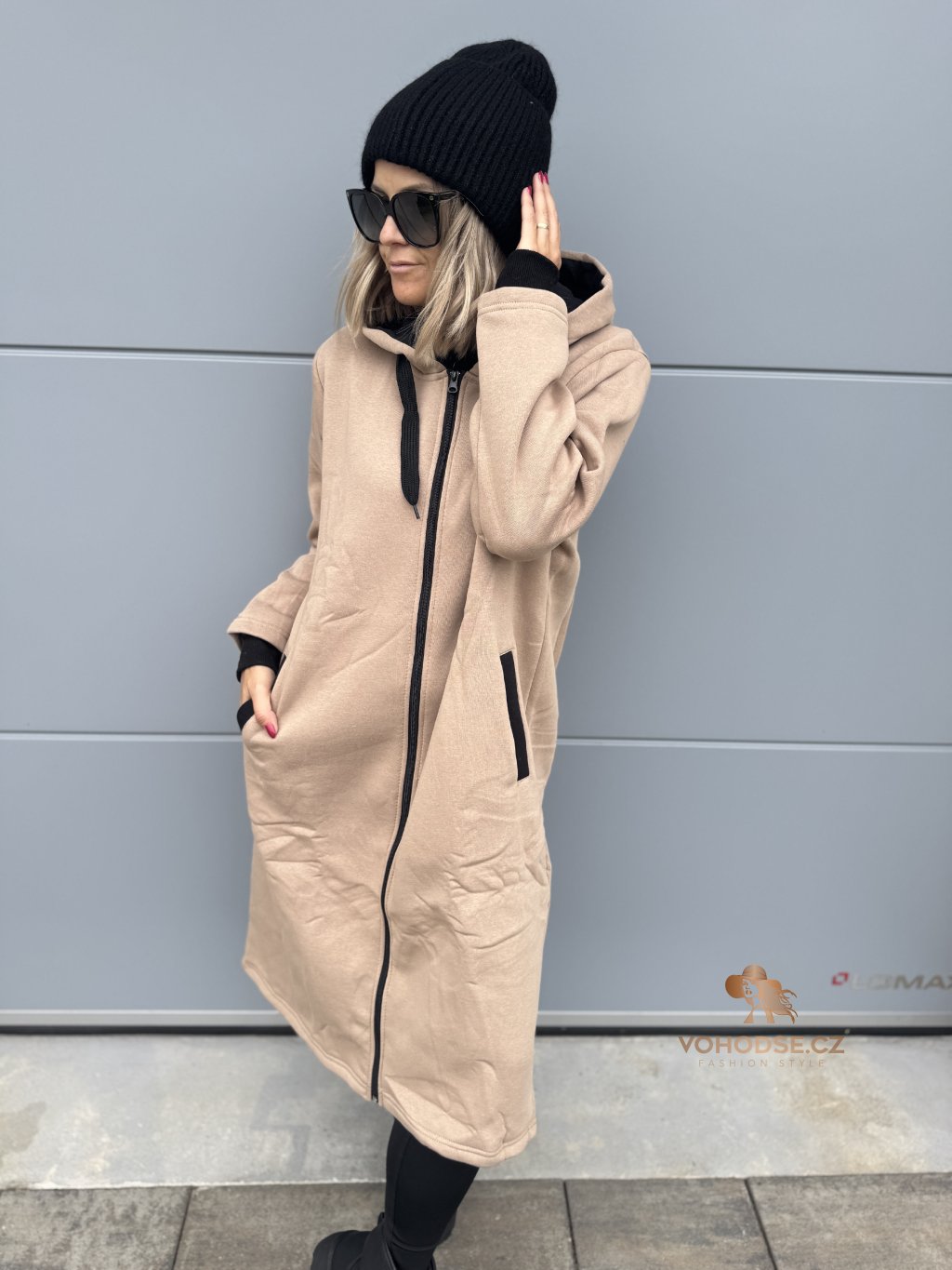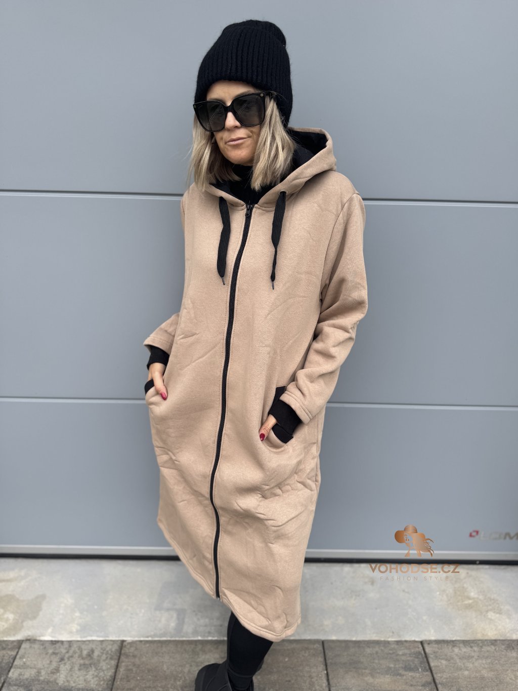 • Stylový - dlouhý dámský mikinový kabátek s kapucí OVERSIZE