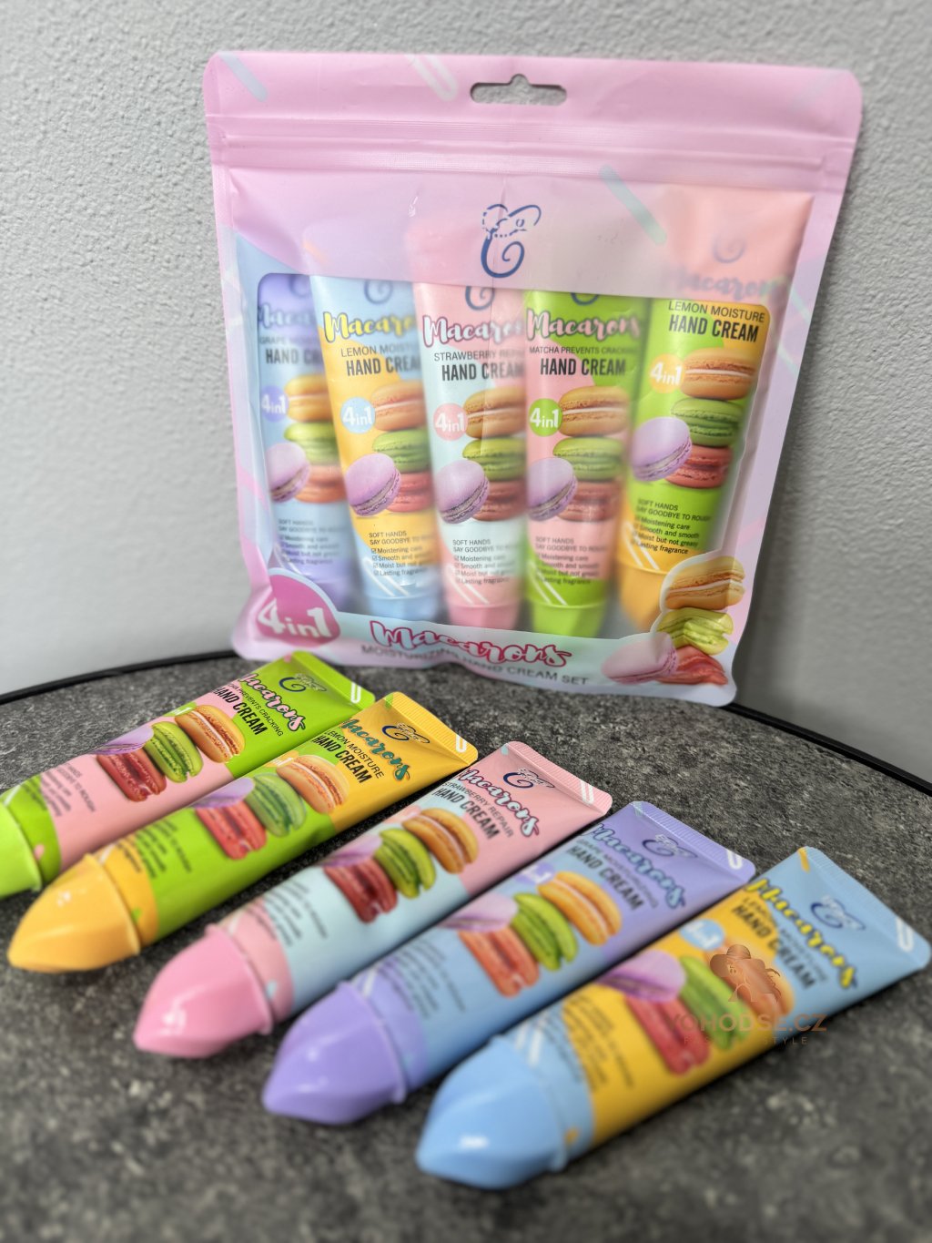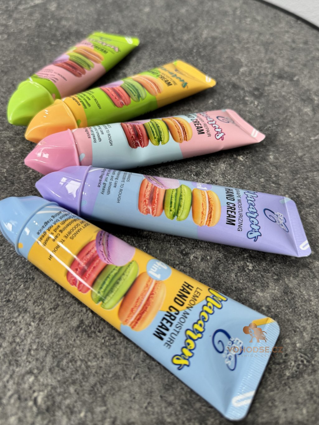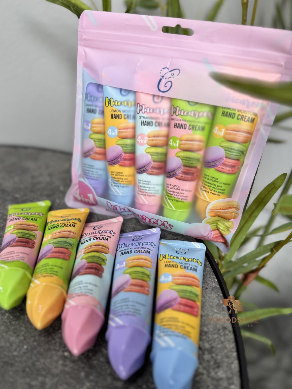 Roztomilá sada krémů na ruce Macarons, které potěší nejen svojí vůní, ale i krásným designem. Krém má lehkou a rychlou vstřebatelnou texturu, která zanechá ruce hebké, hydratované a příjemně provoněné. Praktické balení je ideální do kabelky, takže můžeš mít své oblíbené vůně vždy u sebe. Dopřej svým rukám péči, kterou si zaslouží, a užij si sladké vůně každý den.