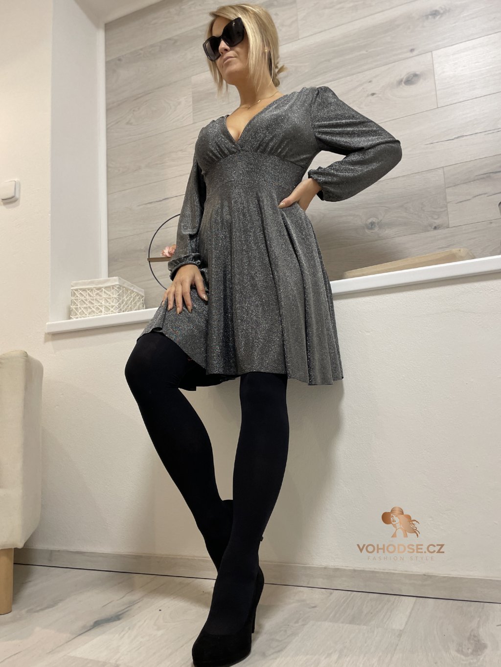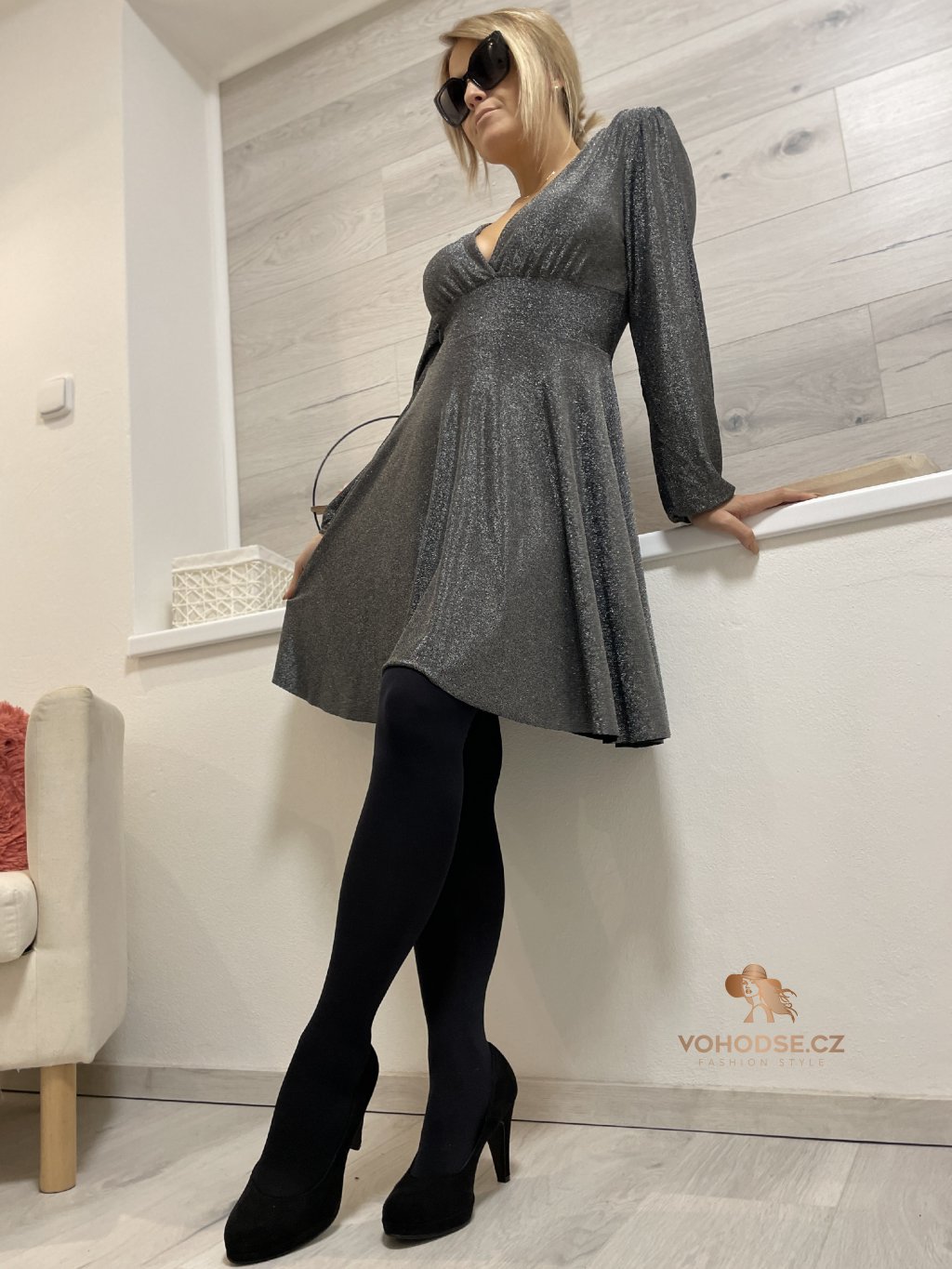 - Krásné třpytivé šaty s výstřihem do V