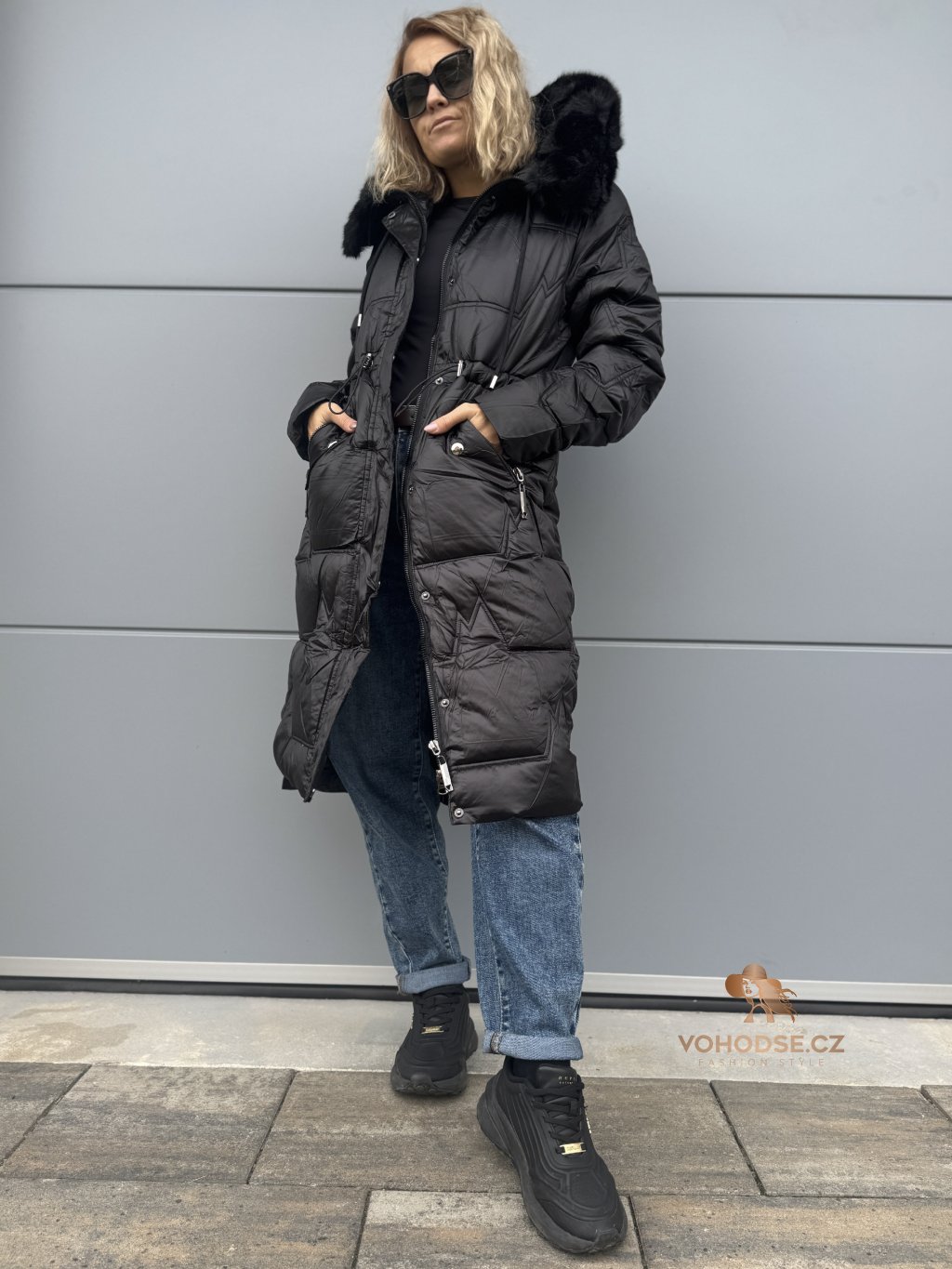 - Nadčasová dámská prošívaná zimní bunda s kapucí