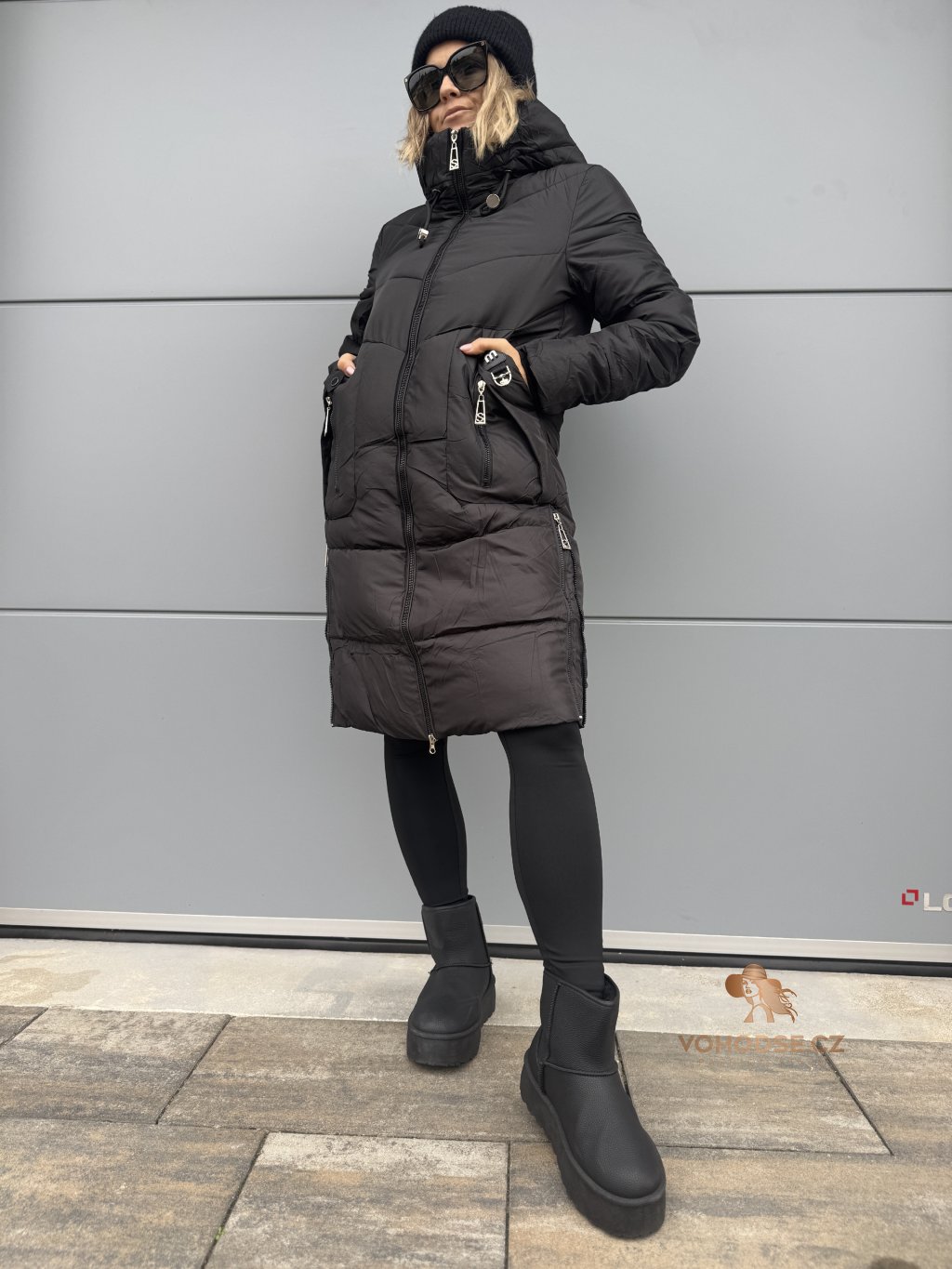 - Dlouhá dámská zimní bunda s kapucí ( kapuce nelze odepnout )